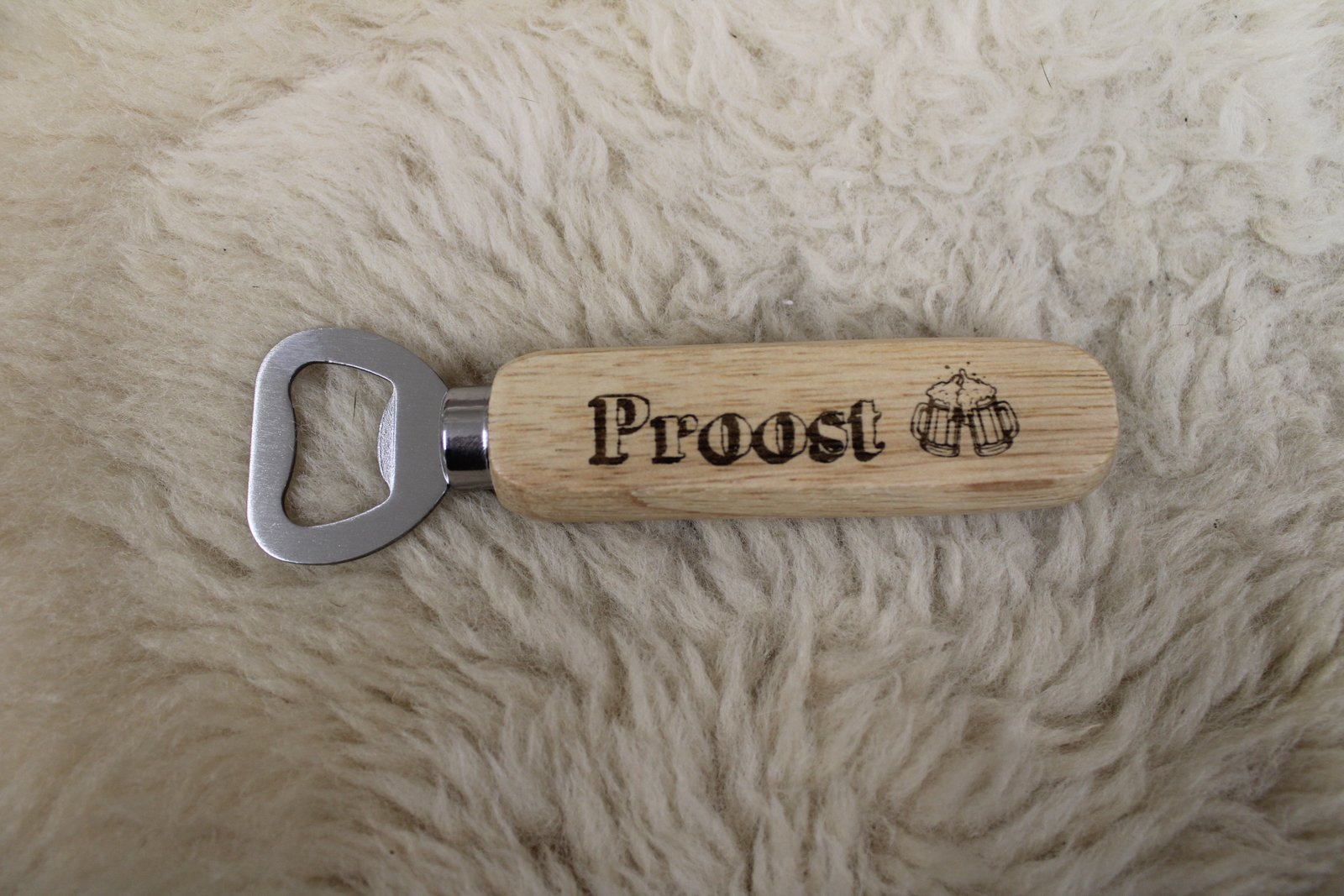 Robuuste houten flesopener met luxe lasergravure. Personaliseer met naam, tekst of logo. Een stijlvol cadeau voor elke gelegenheid – praktisch én persoonlijk.
